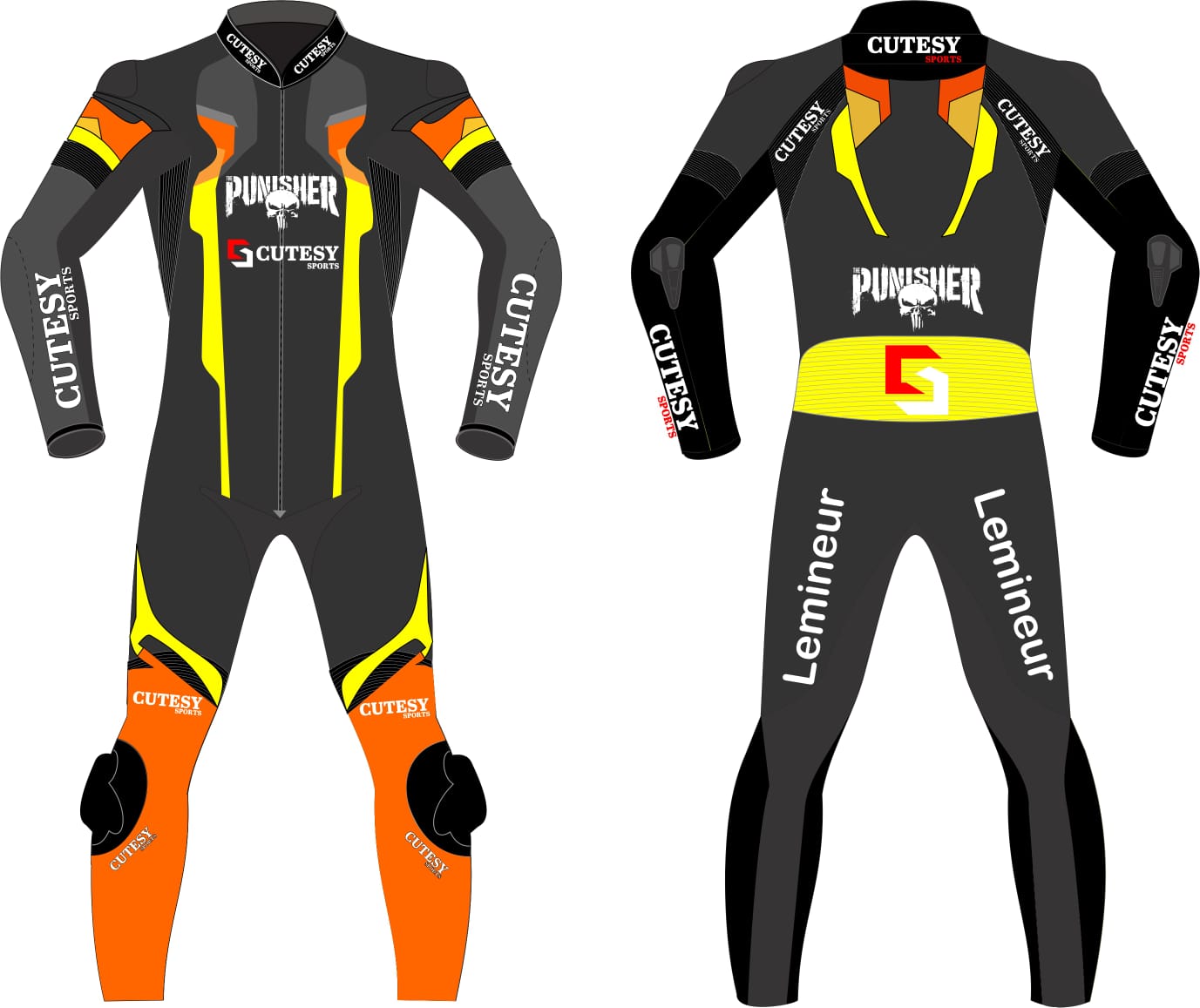 The Blaze Punisher combines safety, durability, and customization. Made from 1.3-1.4mm kangaroo or cowhide leather, this one-piece suit offers CE Level 2 protection on key impact areas including shoulders, knees, elbows, thighs, and chest. Its triple-stitched construction with quality thread and original YKK zipper ensures long-lasting performance. Inside, matching mesh and Kevlar reinforcements on arms and legs enhance comfort and strength. Sponsors like Dellorto, Brembo, and Pirelli can be customized to your choice, while the Vibram sole and shoulder hanging feature add practical finishing touches for serious racers.