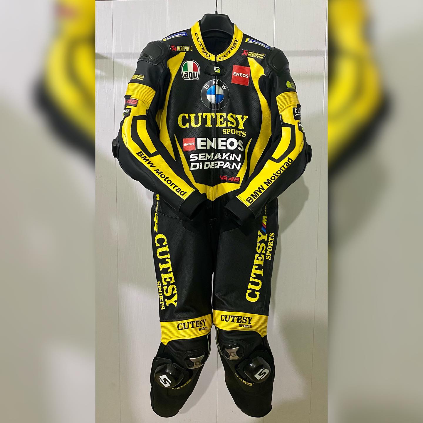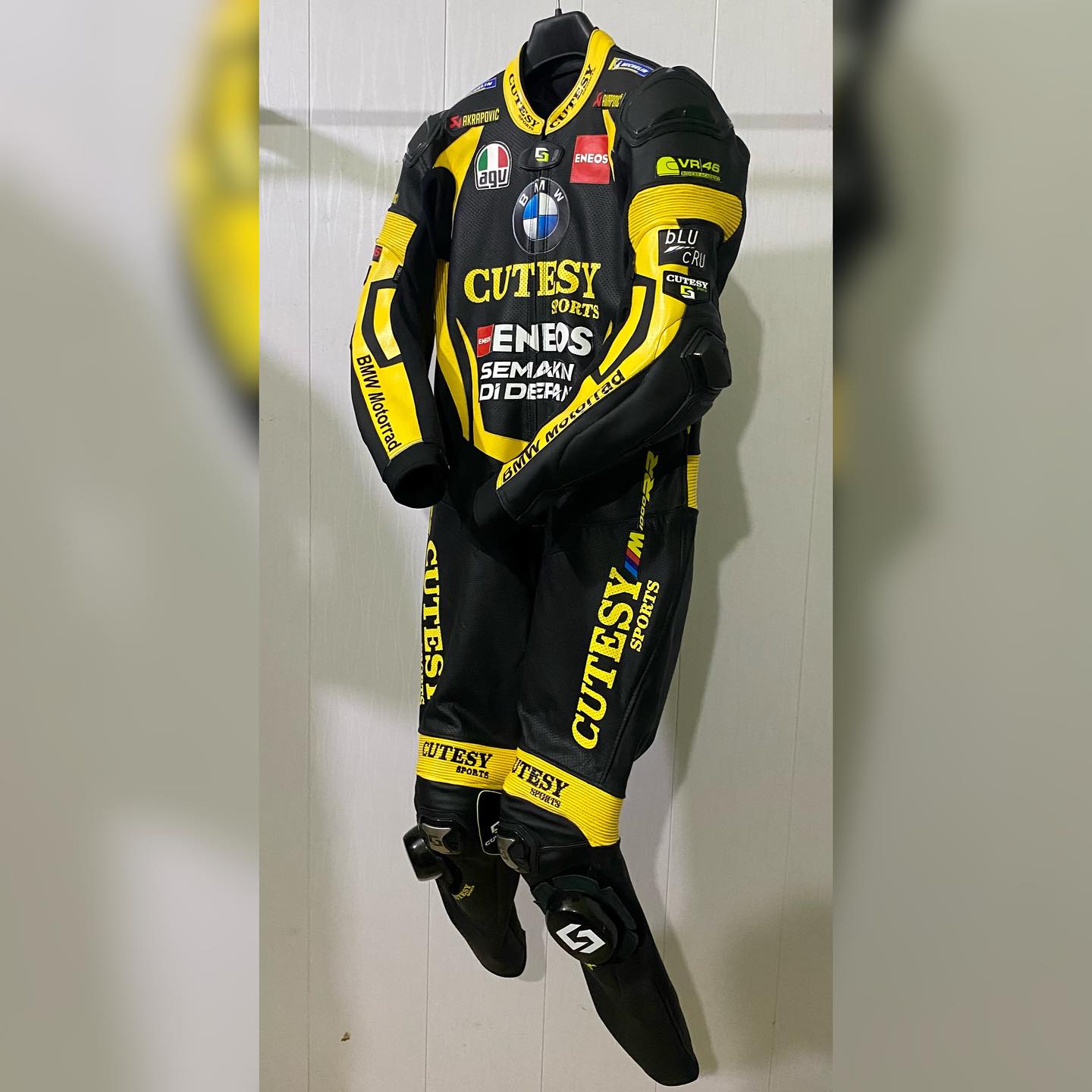 The SpeedNova combines safety, durability, and customization. Made from 1.3-1.4mm kangaroo or cowhide leather, this one-piece suit offers CE Level 2 protection on key impact areas including shoulders, knees, elbows, thighs, and chest. Its triple-stitched construction with quality thread and original YKK zipper ensures long-lasting performance. Inside, matching mesh and Kevlar reinforcements on arms and legs enhance comfort and strength. Sponsors like Dellorto, Brembo, and Pirelli can be customized to your choice, while the Vibram sole and shoulder hanging feature add practical finishing touches for serious racers.