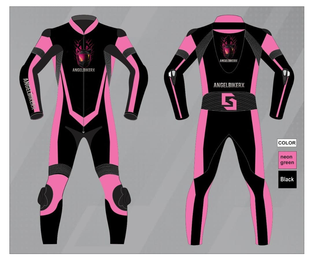 The Crimson Diva combines safety, durability, and customization. Made from 1.3-1.4mm kangaroo or cowhide leather, this one-piece suit offers CE Level 2 protection on key impact areas including shoulders, knees, elbows, thighs, and chest. Its triple-stitched construction with quality thread and original YKK zipper ensures long-lasting performance. Inside, matching mesh and Kevlar reinforcements on arms and legs enhance comfort and strength. Sponsors like Dellorto, Brembo, and Pirelli can be customized to your choice, while the Vibram sole and shoulder hanging feature add practical finishing touches for serious racers.